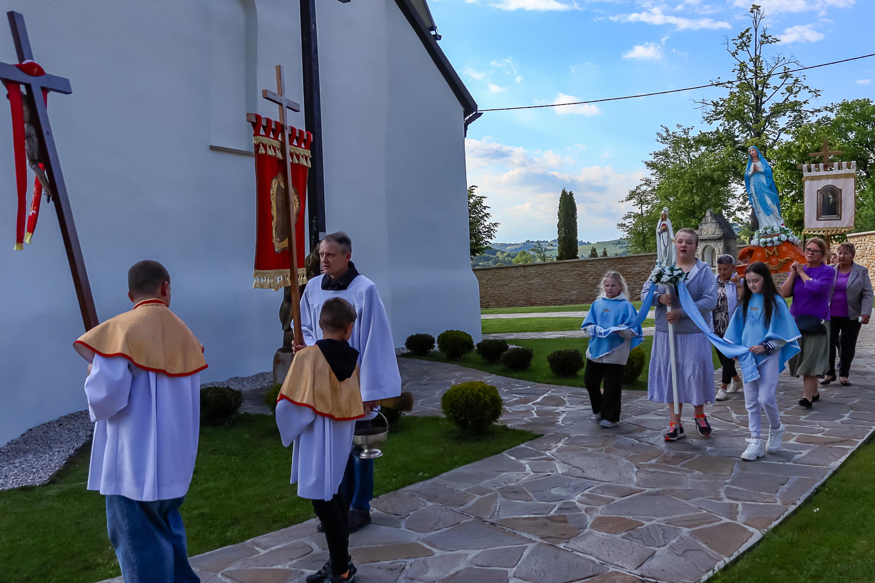 W dniach 26-28 maja 2025 r. przeżywaliśmy Dni Krzyżowe – dni modlitw o urodzaje i zachowanie od klęsk żywiołowych. W ramach modlitwy wierni uczestniczyli w procesji z Litanią do Wszystkich Świętych i z majówką. W poniedziałek do św. Jana Nepomucena, we wtorekdo kapliczki Matki Bożej do parku i w środę przy pomniku św. Jana Pawła II.