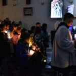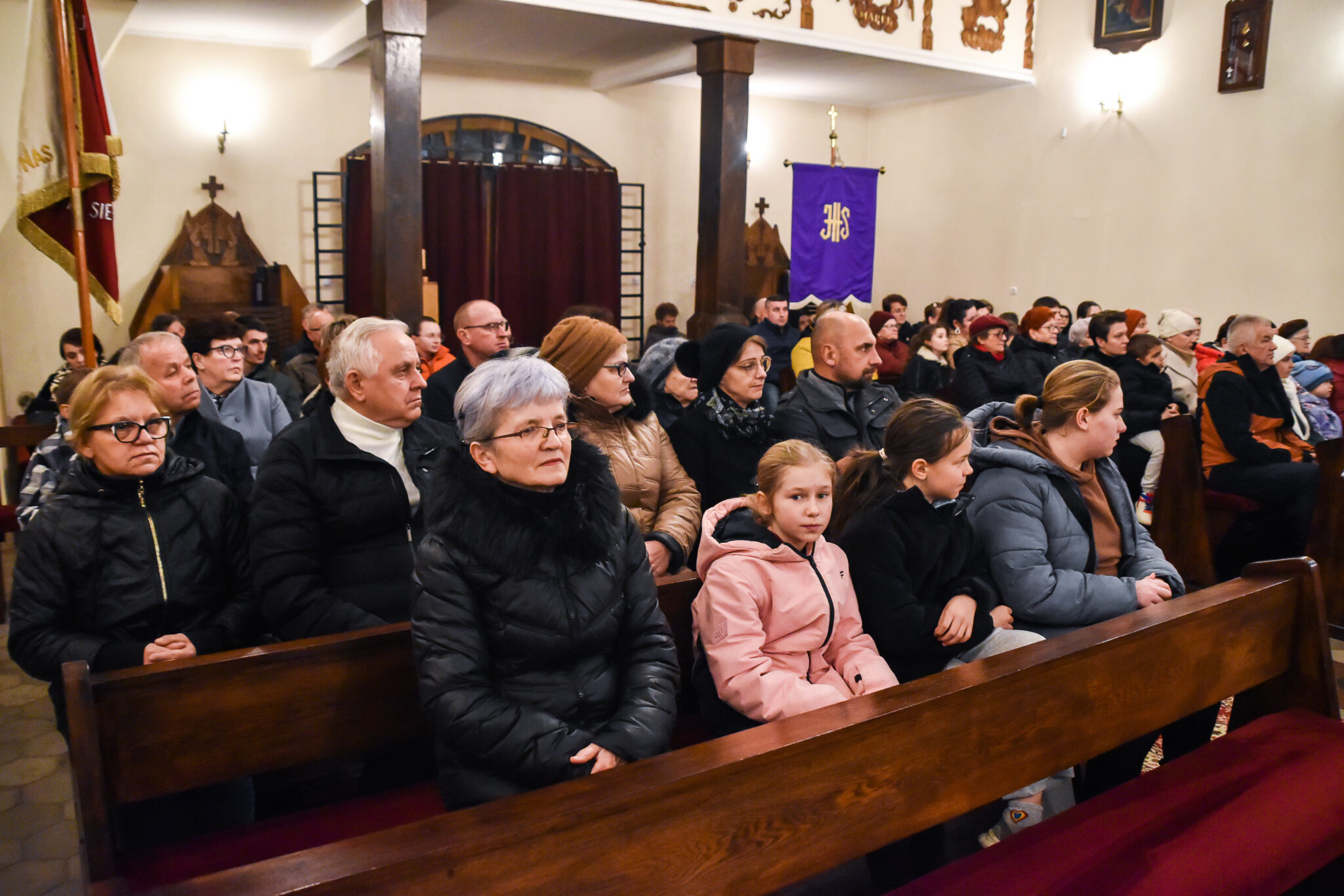 W czasie Rorat losujemy pamiątki dla dzieci spośród wykonanych serduszek z wypisanym dobrym uczynkiem.